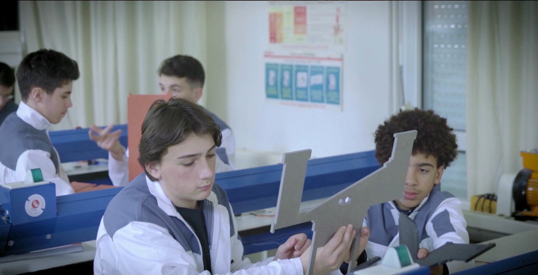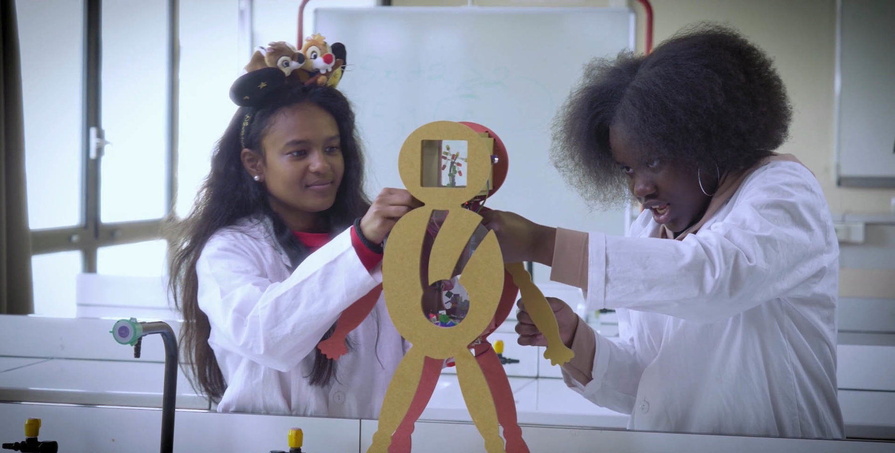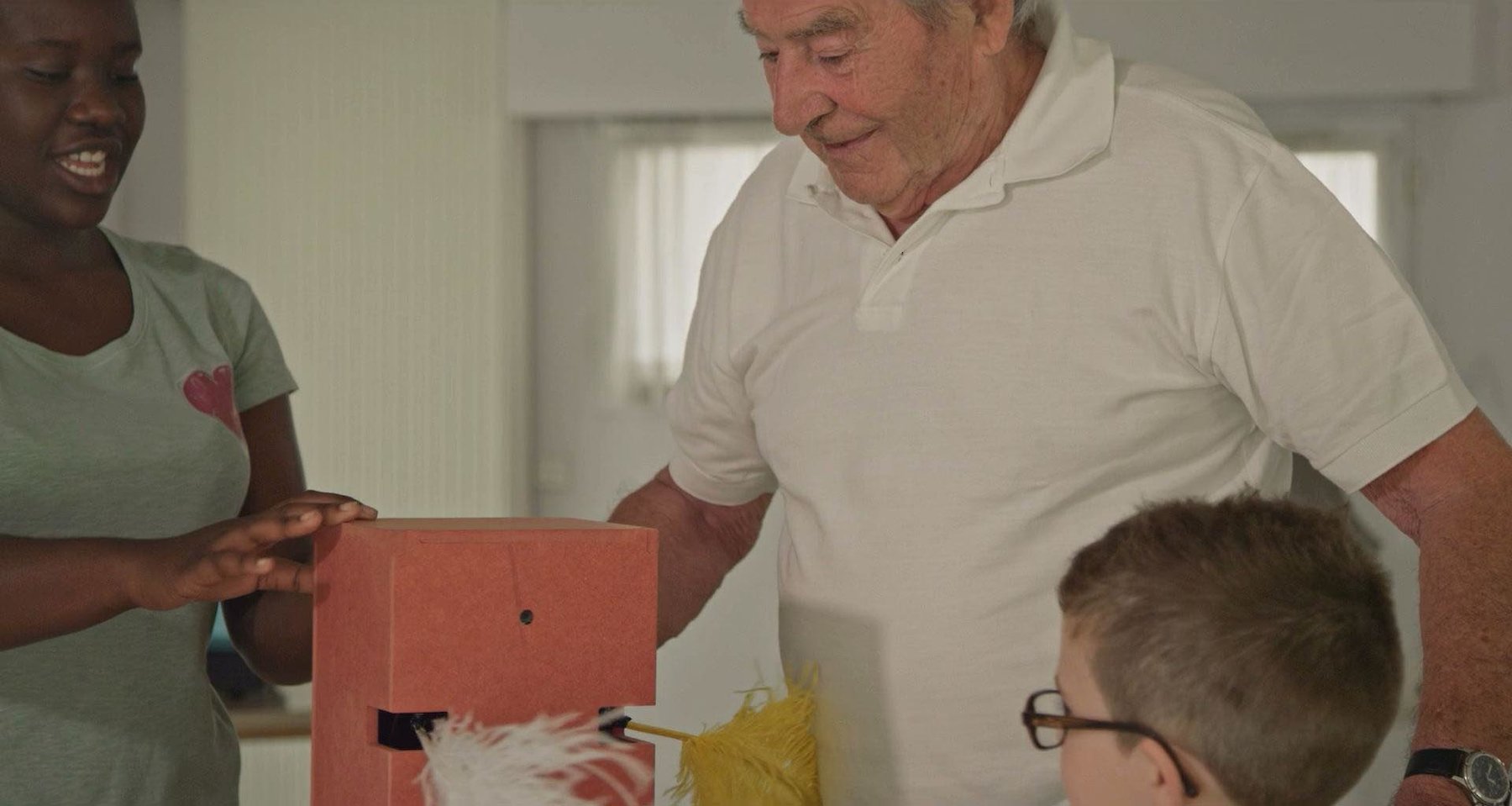 Playing with the aesthetic codes of three genres – documentary, corporate and experimental film – and loosely structured in 3 chapters, “Aurore” investigates the affective dimensions of those genres. This semi-documentary science-fiction about the future of care and the automatization of affect has been developed in the context of a collaborative project that Marlies Pöschl undertook during her artist residency at CAC Brétigny, Paris. All the elements that appear in this film have been created in collaboration with the participants: primary school children, high school students and seniors. The second part of the film is a collaboration between Pöschl, composer Peter Kutin and vocal artist Agnes Hvizdalek. "Aurore" is an attempt to write science-fiction differently: in dialogue, in vernacular.