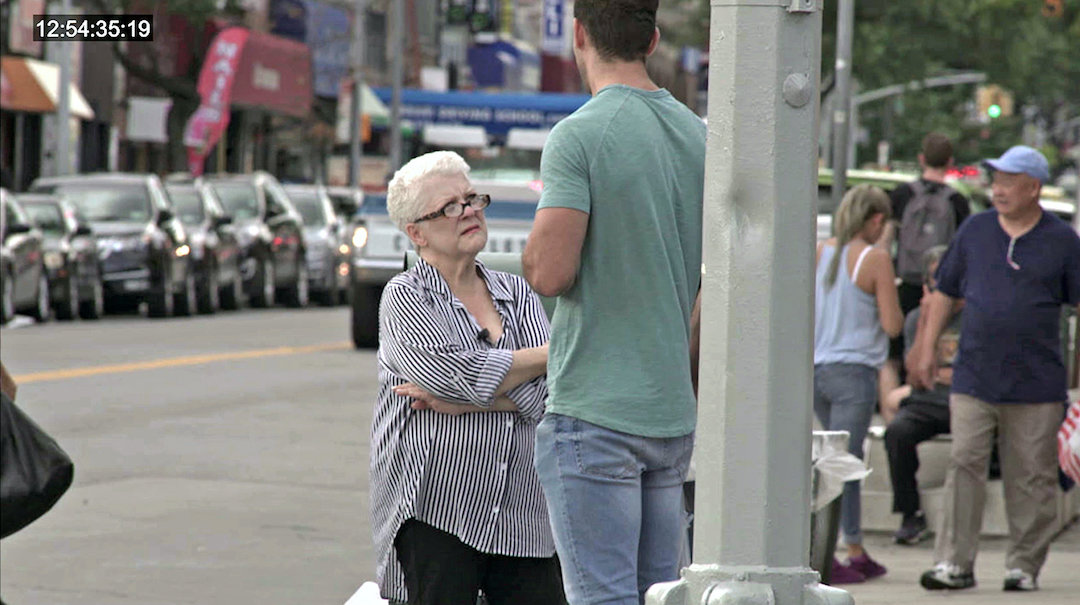 On a street corner in Queens, New York, an elderly, white-haired woman hovers, apparently waiting or looking for something – then starts approaching passersby. Miked up close, but viewed – surveillance-style – from distant rooftops, she asks them philosophical questions about turning points in their lives, sometimes eliciting candidly revealing answers from people who seemingly need to talk. She’s also seen up close at street level, viewed by a shaky nearby camera. And intermittently we hear the affectless voiceover of an English male reading an account of a prison spell. What exactly are we seeing? A documentary of sorts? A fiction stripped of its expected signposts? The woman is real-life casting director Martha Wollner, but the film never makes it clear what her mission is, what she hopes to learn, and what her relation is to the distant speaker (who may also be the distant observer). Echoing Coppola’s THE CONVERSATION, as well as works by Phillip Warnell’s fellow British experimental directors John Smith and Chris Petit, this is an enigmatic, elusive piece. Yet, as the title suggests, those moments when Wollner connects with the interiority of perfect strangers makes this an alluringly, unexpectedly compassionate guerrilla foray into urban experience. (Jonathan Romney)