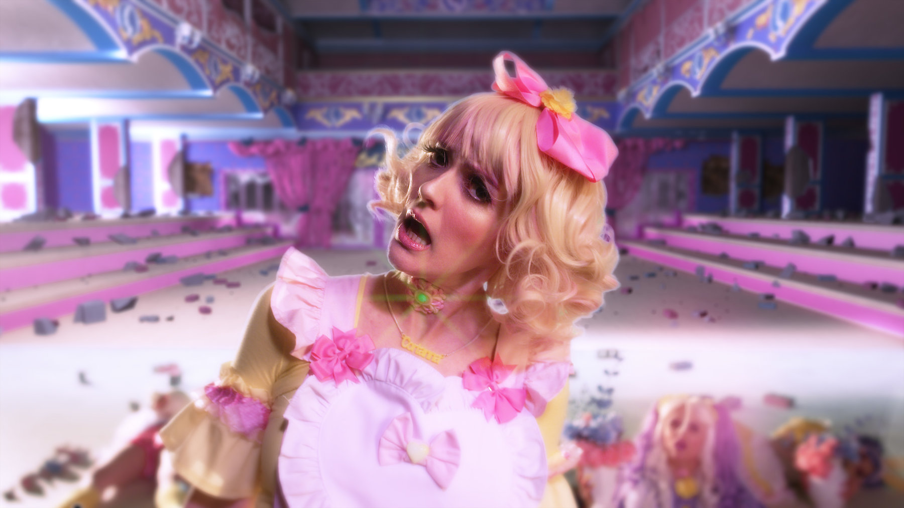 Siri wakes to find herself trapped inside a brutalist candy-coloured dreamhouse. Despite the cutesy decor, the place is far from benign, and she and her inmates are encouraged to compete for survival while being watched over by surveillance cameras, 24/7.