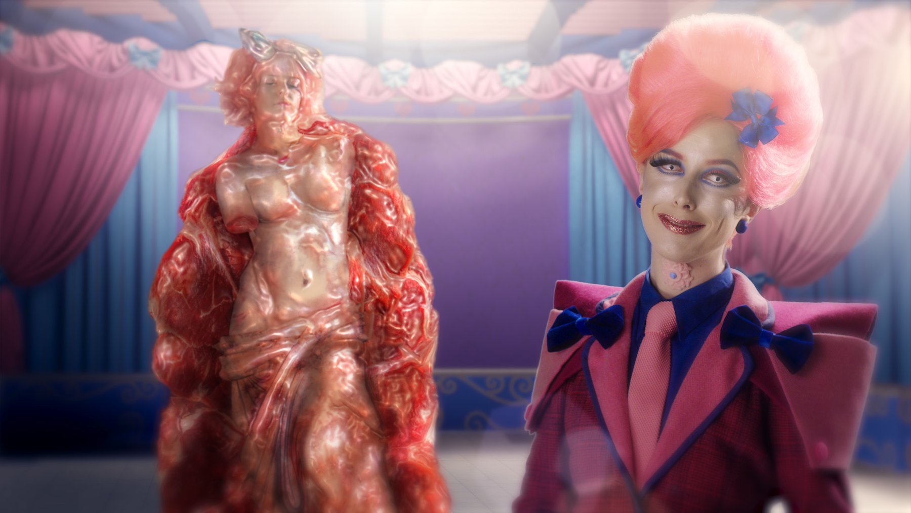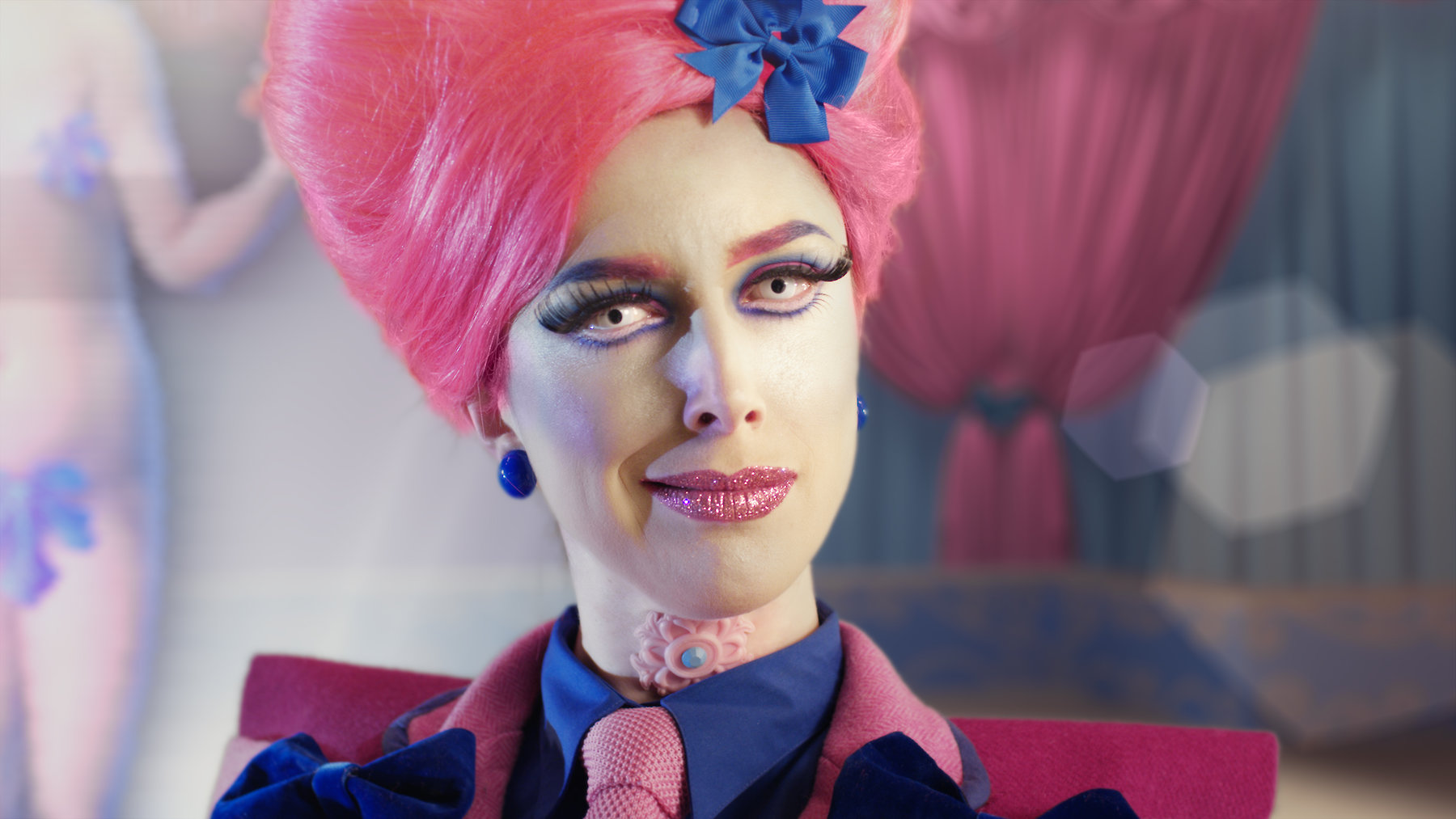 In Make Me Up, multimedia artist Rachel Maclean has created a world that is both seductive and dangerous; a place where surveillance, violence and submission are a normalised part of daily life. She tackles these contradictions head-on and never balks at pushing boundaries.